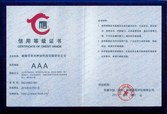 | 凌海市農(nóng)光種業(yè)科技有限責(zé)任公司是由遼寧省種子管理局和凌海市人民政府批準(zhǔn),集科研、生產(chǎn)、試驗(yàn)示范、經(jīng)營為一體的種子企業(yè)。 公司擁有種子繁育基地3萬畝,年產(chǎn)種子1200萬公斤左右。自成立以來在農(nóng)業(yè)部及遼寧省歷次花期檢驗(yàn)中,所生產(chǎn)的種子質(zhì)量合格,擁有良好的儲備、晾曬和機(jī)械加工設(shè)備,為了提高種子質(zhì)量,2015年新購置種子脫粒機(jī)、清選機(jī)、烘干機(jī)以及電腦包裝機(jī)等整套加工設(shè)備,擁有經(jīng)省技術(shù)監(jiān)督局認(rèn)證的“標(biāo)準(zhǔn)化檢驗(yàn)室”,投資20萬元購買人工氣候室、土壤測試儀、低溫低濕冷藏箱等各種檢驗(yàn)設(shè)備。公司重視種子科研工作,現(xiàn)有科研育種實(shí)驗(yàn)基地100畝,科研上以自主研發(fā)為主,同時(shí)與多家科研單位合作育種,每年繁、育、測交材料2000多份,現(xiàn)以推出五個(gè)組合參加錦州區(qū)域試種,其中“農(nóng)光3號、農(nóng)光4號”在錦州地區(qū)試驗(yàn)中產(chǎn)量居首位。2006年公司買斷的連玉16玉米品種已通過5個(gè)省市的審認(rèn)定,具有適應(yīng)性廣、抗逆性強(qiáng)、產(chǎn)量高的特點(diǎn),曾榮獲大連科技進(jìn)步一等獎,深受廣大農(nóng)戶的歡迎。2008年公司新選育的農(nóng)光4000玉米品種在市種子管理站新品種大區(qū)試驗(yàn)項(xiàng)目中。2012年公司買斷錦玉118品種權(quán),新品種的推廣與應(yīng)用為公司的發(fā)展提供了充足的動力...... |